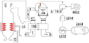 还原剂通过安装在CFB锅炉分离器入口或屏式过热器区域的喷嘴喷入炉膛,还原剂与烟气混合发生化学反应。