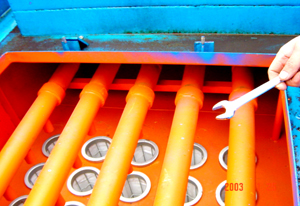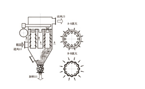 具有离线清灰、离线检修功能(即可实现不停机检修)、采用固定式管喷清灰技术的高效低压脉冲袋式除尘器的过滤方式为外滤式,即含尘气体在滤袋外、过滤后的洁净气体在滤袋内部,并通过排风总管排放。